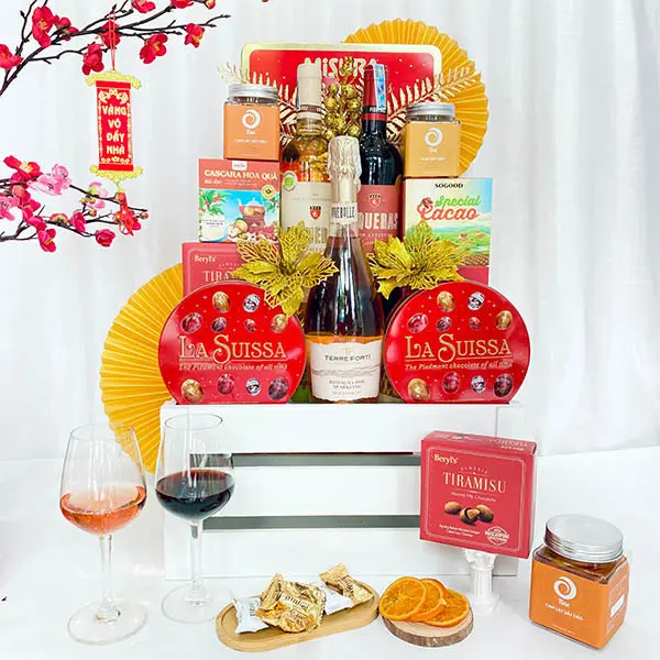 Với sự kết hợp hoàn hảo giữa các sản phẩm cao cấp từ khắp nơi trên thế giới như Rượu Vang Ý, Rượu Vang Tây Ban Nha, Chocolate đến từ Ý, Kẹo Sâm Hàn Quốc và nhiều sản phẩm chất lượng khác từ Việt Nam, Malaysia, Indonesia… mỗi sản phẩm đều được lựa chọn kỹ lưỡng, đảm bảo mang đến hương vị đặc trưng và chất lượng tốt nhất. Giỏ quà tết 2490 hứa hẹn là một lựa chọn vô cùng hợp lý để tặng cho đồng nghiệp, người thân, đối tác, doanh nghiệp: