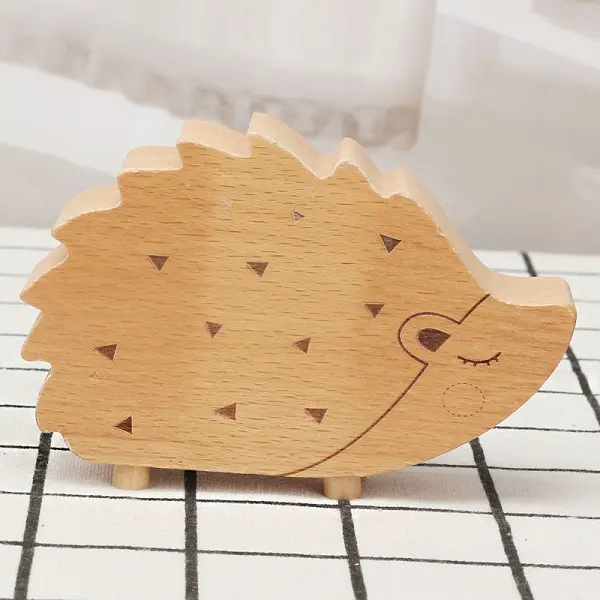 Hộp nhạc gỗ hình nhím được làm từ chất liệu gỗ tự nhiên.