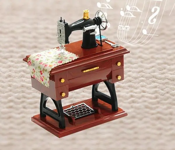 Hộp nhạc phát nhạc bằng bộ cót. Khi phát nhạc, kim khâu, bàn đạp có thể chuyển động lên xuống như thật.