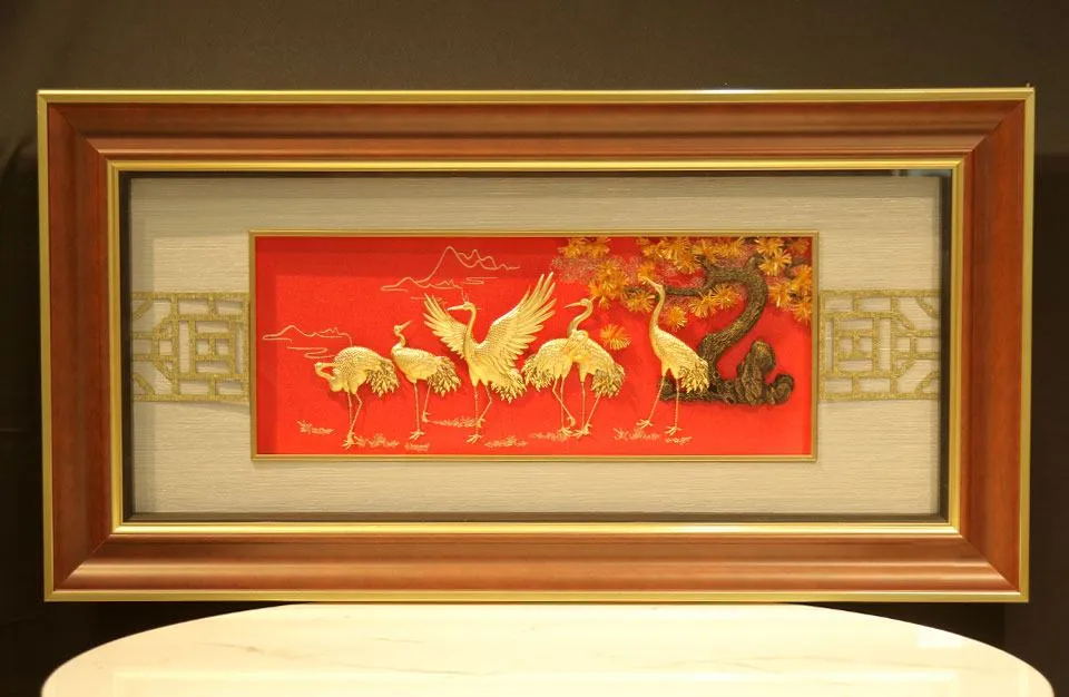 Tùng và hạc là hai biểu tượng thường được sử dụng để biểu thị sự bình an, tài lộc, sự thịnh vượng và sự may mắn.